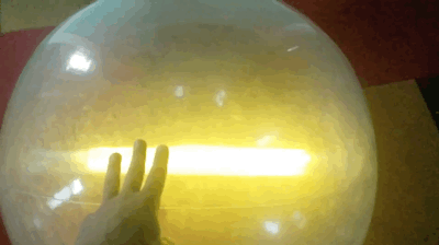 Inflatable LED ball responds to bumps with bright lights.